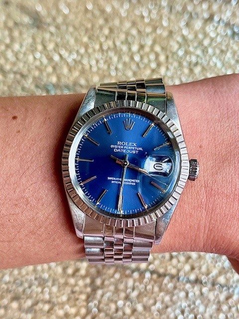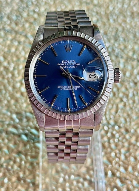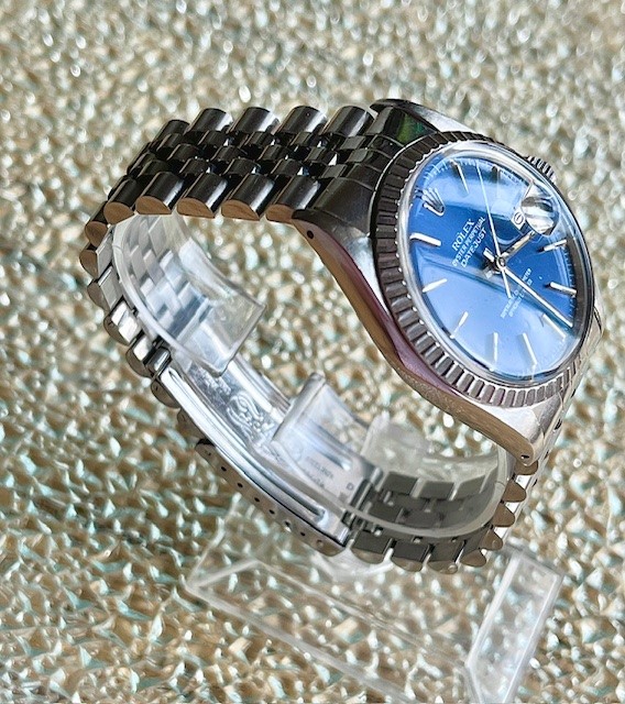 On ne présente plus ce modèle chic qu’est la Rolex Datejust. Dernière évolution ici avec un diamètre 36 en lunette cannelée bracelet jubilée, juste le bon équilibre, équipée d’un magnifique cadran bleu. .