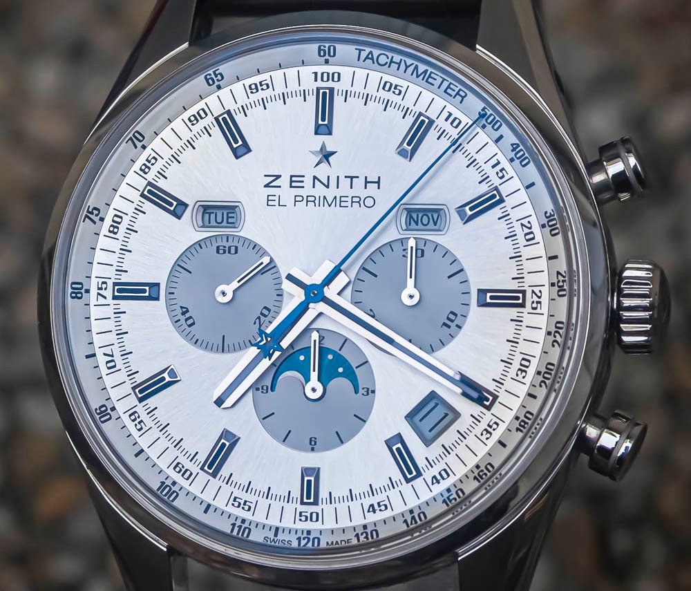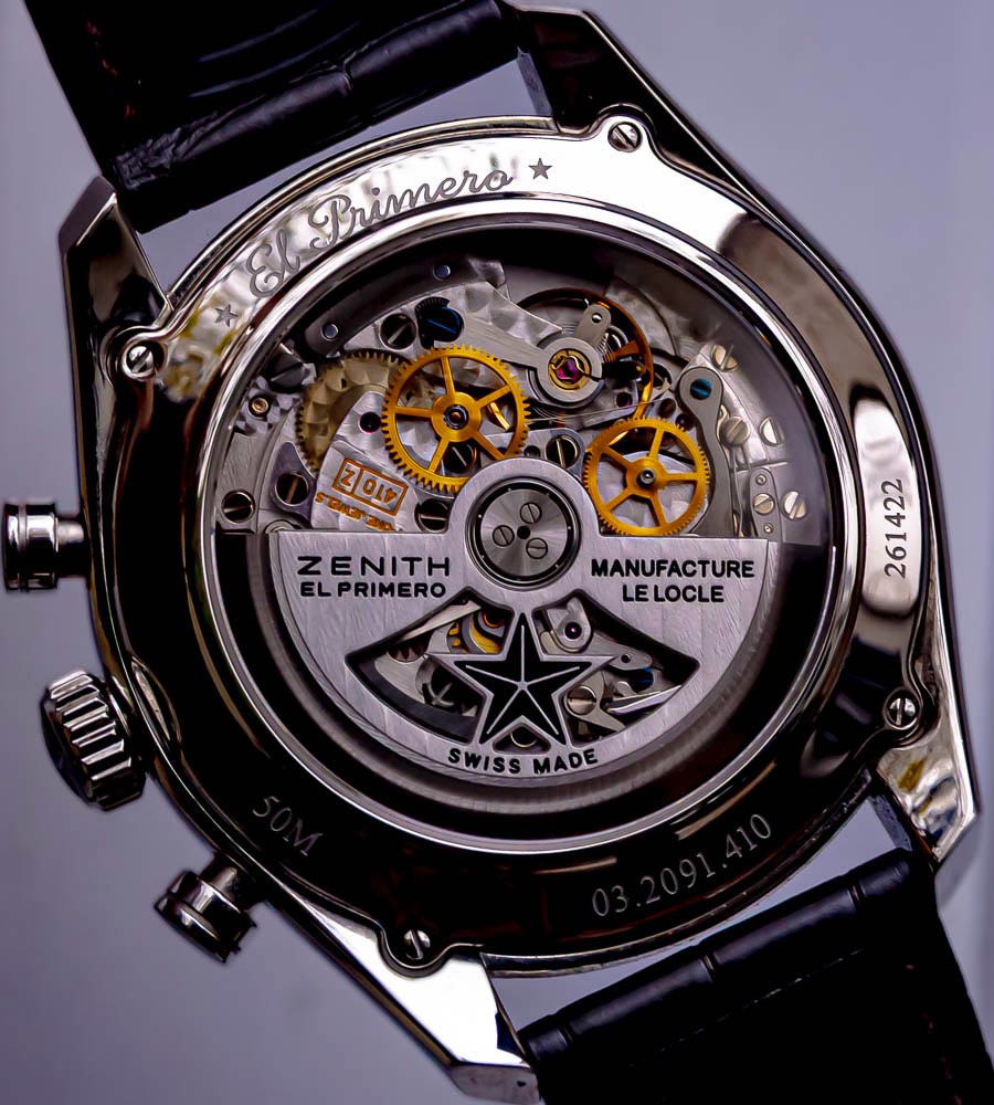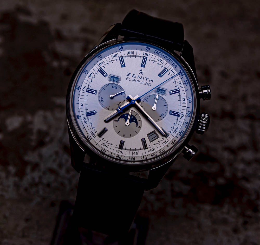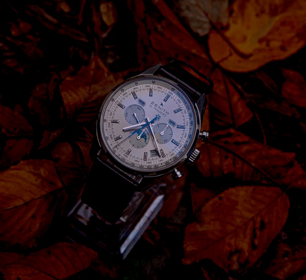 El Primero , comme son nom l’indique le premier, premier chronograph à remontage automatique avec ici le célèbre calibre El Primero oscillant à 36 000bph. Superbe édition en complication day date et phase de lune.